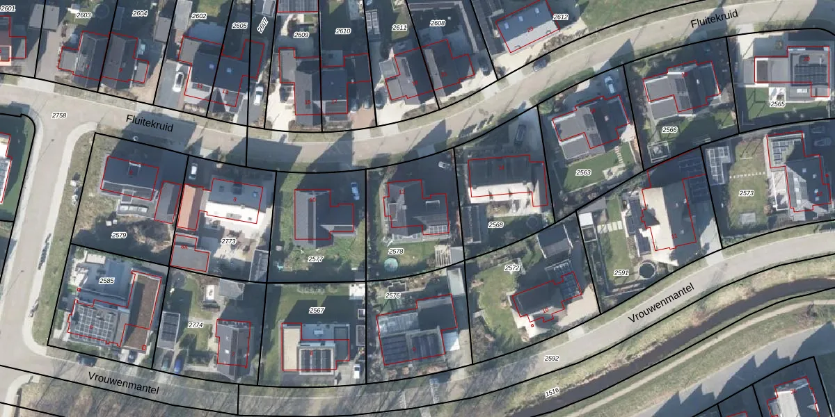 Het perceel waarop Fluitekruid 12 staat heeft een oppervlakte van 617 m². Dit is een groot perceel. De perceeloppervlakte wordt geregistreerd door het Kadaster. Gedetailleerde informatie over de maten van dit perceel kunt u vinden in het rapport Kadastrale kaart met maatvoering van Fluitekruid 12.