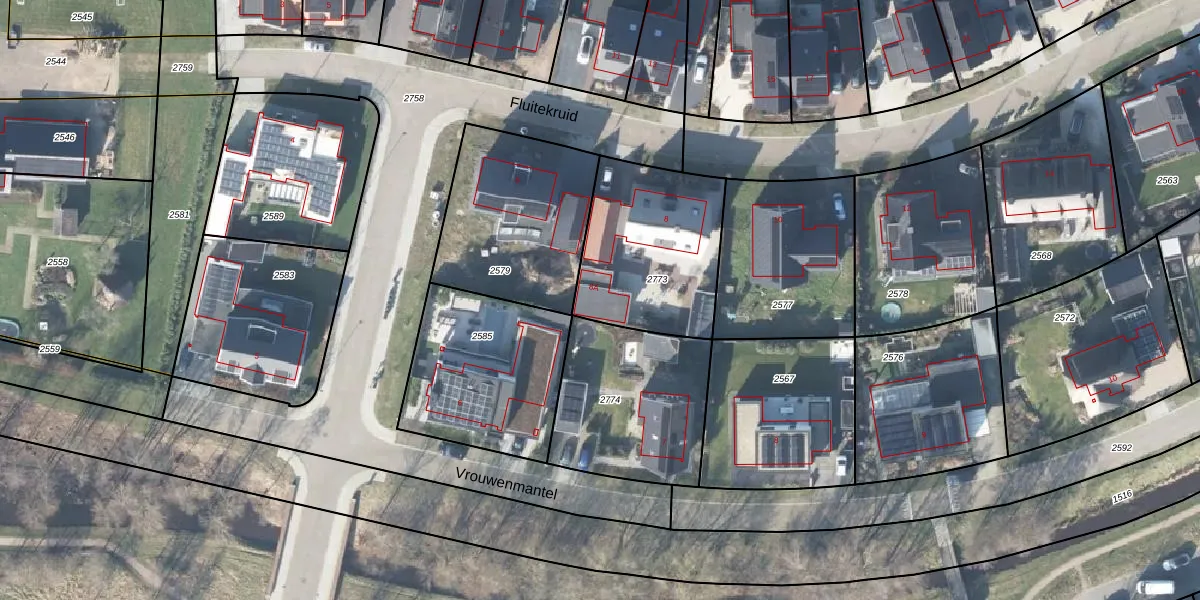 Fluitekruid 8-A is gelegen op kadastraal perceel VHZ02E2773. Deze kadastrale aanduiding is uniek en wordt gebruikt door het Kadaster om eigendomsrechten en andere zakelijke rechten vast te leggen. Het perceel maakt onderdeel uit van de kadastrale gemeente Voorthuizen.