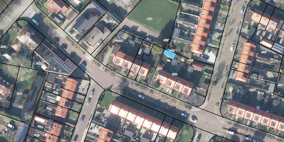 Gerard Doustraat 11 is gelegen op kadastraal perceel VHZ02D3561. Deze kadastrale aanduiding is uniek en wordt gebruikt door het Kadaster om eigendomsrechten en andere zakelijke rechten vast te leggen. Het perceel maakt onderdeel uit van de kadastrale gemeente Voorthuizen.