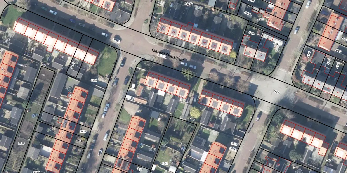 Gerard Doustraat 22 is gelegen op kadastraal perceel VHZ02D3228. Deze kadastrale aanduiding is uniek en wordt gebruikt door het Kadaster om eigendomsrechten en andere zakelijke rechten vast te leggen. Het perceel maakt onderdeel uit van de kadastrale gemeente Voorthuizen.