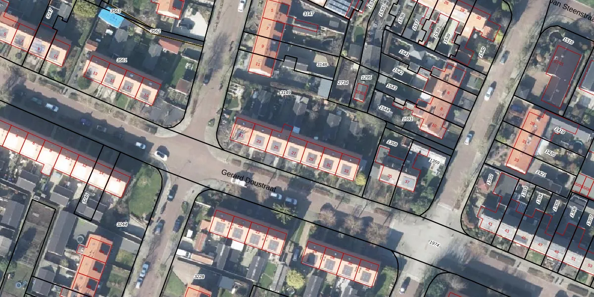 Gerard Doustraat 27 is gelegen op kadastraal perceel VHZ02D3149. Deze kadastrale aanduiding is uniek en wordt gebruikt door het Kadaster om eigendomsrechten en andere zakelijke rechten vast te leggen. Het perceel maakt onderdeel uit van de kadastrale gemeente Voorthuizen.