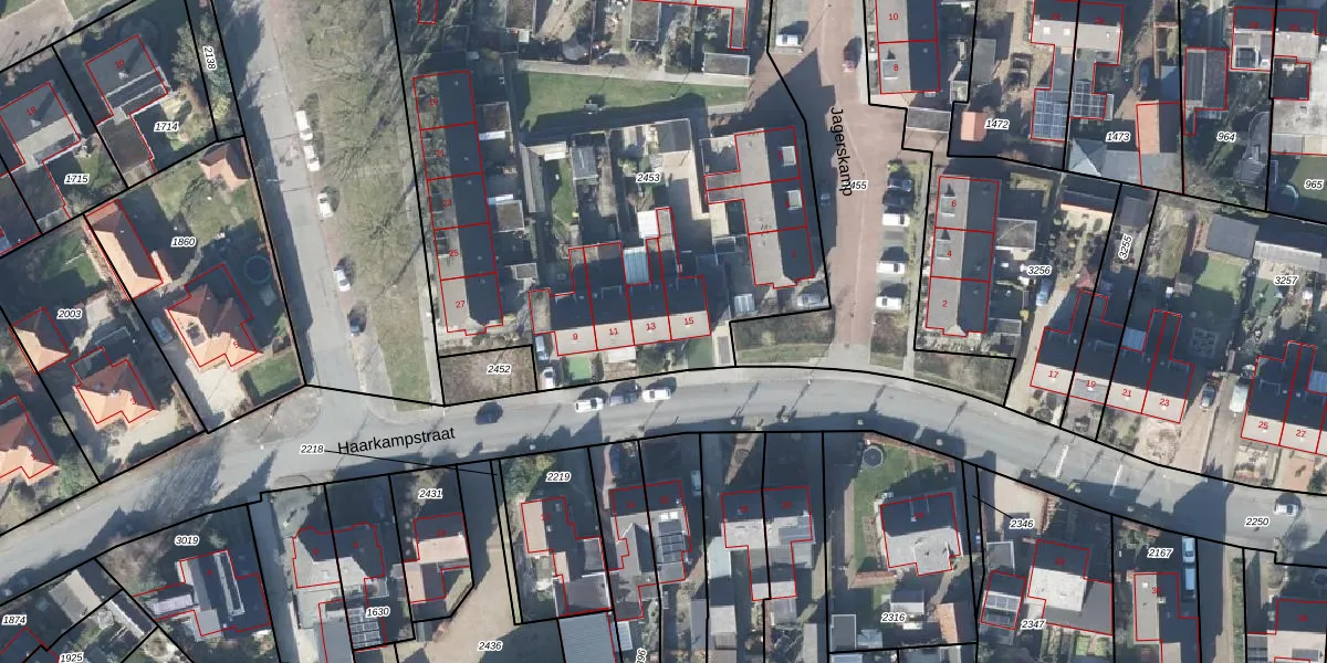 Haarkampstraat 13 is gelegen op kadastraal perceel VHZ02F2453. Deze kadastrale aanduiding is uniek en wordt gebruikt door het Kadaster om eigendomsrechten en andere zakelijke rechten vast te leggen. Het perceel maakt onderdeel uit van de kadastrale gemeente Voorthuizen.