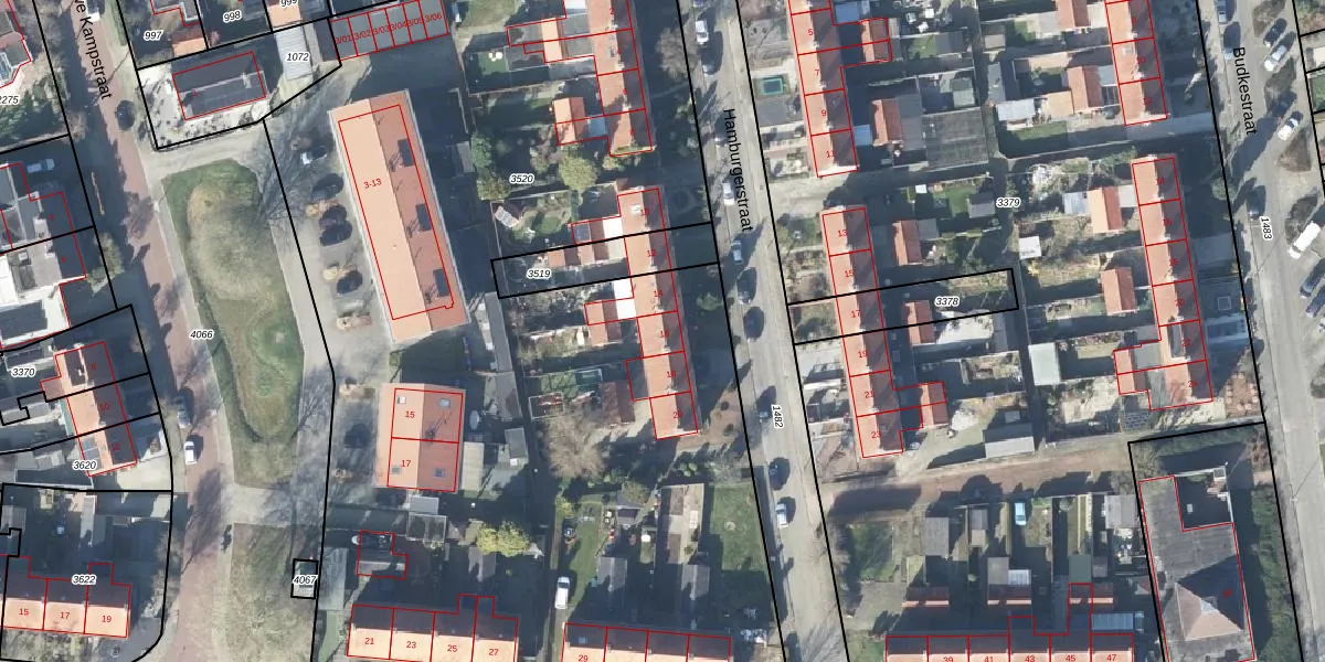 Hamburgerstraat 16 is gelegen op kadastraal perceel VHZ02F3520. Deze kadastrale aanduiding is uniek en wordt gebruikt door het Kadaster om eigendomsrechten en andere zakelijke rechten vast te leggen. Het perceel maakt onderdeel uit van de kadastrale gemeente Voorthuizen.