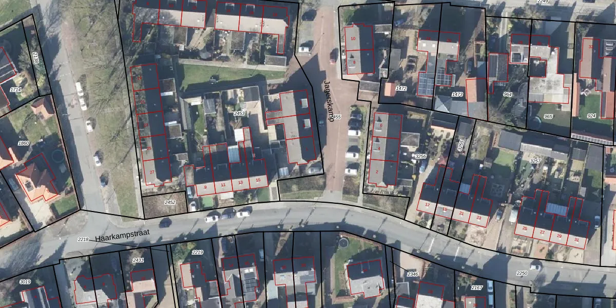 Het perceel waarop Jagerskamp 1 staat heeft een oppervlakte van 3815 m². Dit is een zeer groot perceel. De perceeloppervlakte wordt geregistreerd door het Kadaster. Gedetailleerde informatie over de maten van dit perceel kunt u vinden in het rapport Kadastrale kaart met maatvoering van Jagerskamp 1.