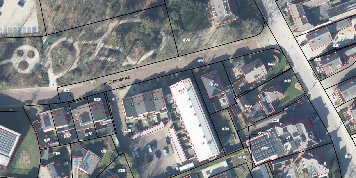 Het perceel waarop Jan Steenstraat 68 staat heeft een oppervlakte van 2932 m². Dit is een zeer groot perceel. De perceeloppervlakte wordt geregistreerd door het Kadaster. Gedetailleerde informatie over de maten van dit perceel kunt u vinden in het rapport Kadastrale kaart met maatvoering van Jan Steenstraat 68.