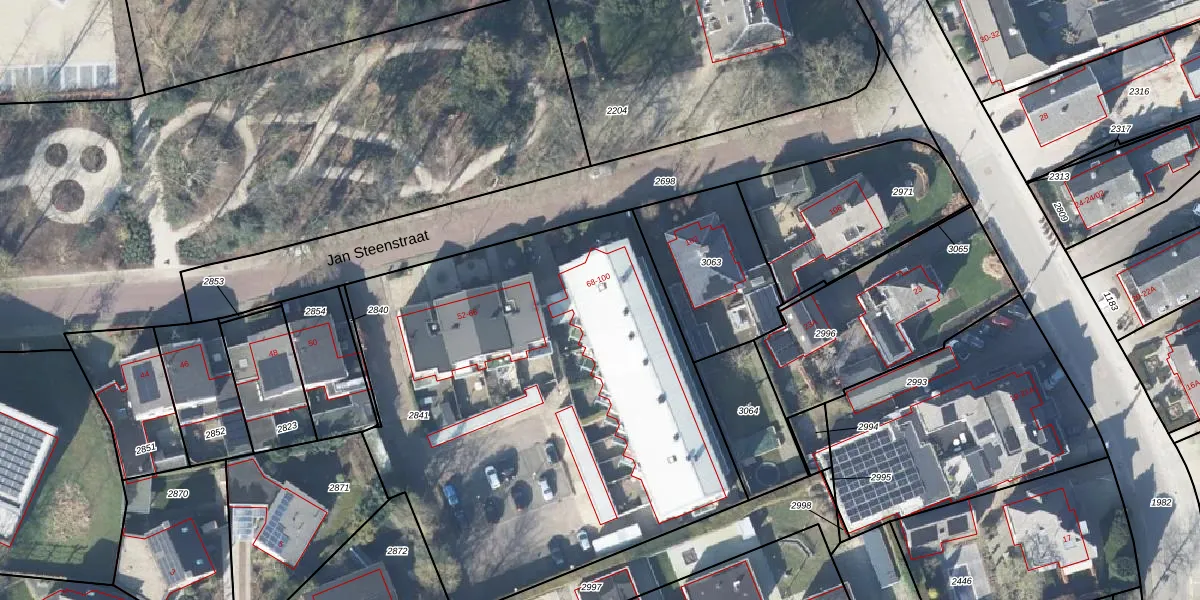 Het perceel waarop Jan Steenstraat 72 staat heeft een oppervlakte van 2932 m². Dit is een zeer groot perceel. De perceeloppervlakte wordt geregistreerd door het Kadaster. Gedetailleerde informatie over de maten van dit perceel kunt u vinden in het rapport Kadastrale kaart met maatvoering van Jan Steenstraat 72.