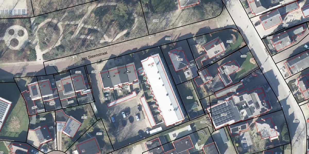 Het perceel waarop Jan Steenstraat 76 staat heeft een oppervlakte van 2932 m². Dit is een zeer groot perceel. De perceeloppervlakte wordt geregistreerd door het Kadaster. Gedetailleerde informatie over de maten van dit perceel kunt u vinden in het rapport Kadastrale kaart met maatvoering van Jan Steenstraat 76.