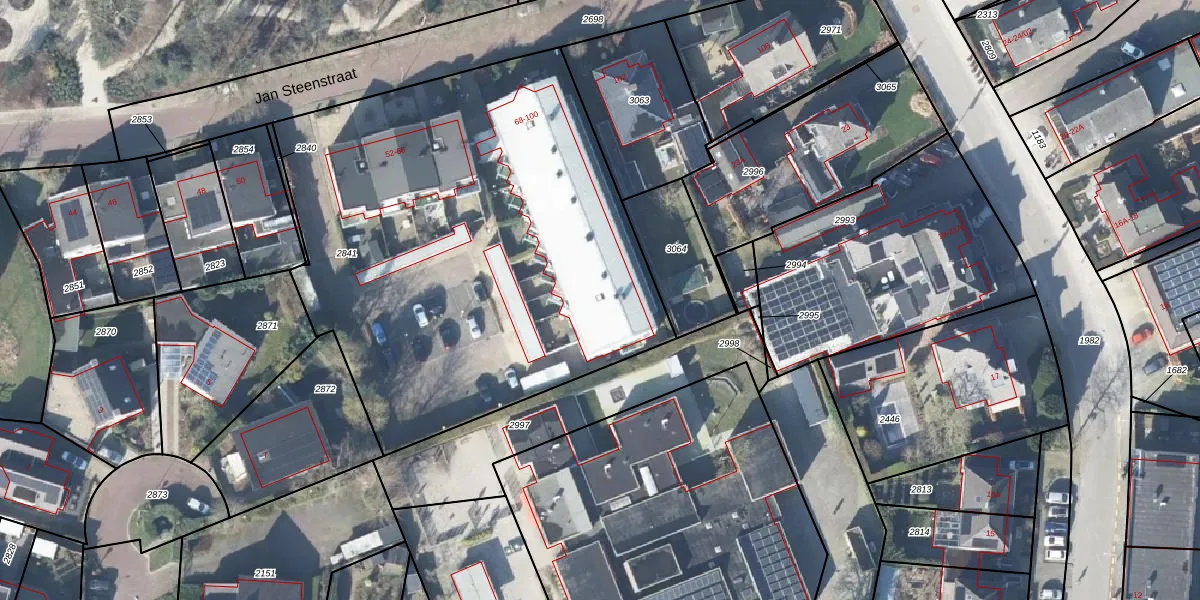 Het perceel waarop Jan Steenstraat 94 staat heeft een oppervlakte van 2932 m². Dit is een zeer groot perceel. De perceeloppervlakte wordt geregistreerd door het Kadaster. Gedetailleerde informatie over de maten van dit perceel kunt u vinden in het rapport Kadastrale kaart met maatvoering van Jan Steenstraat 94.