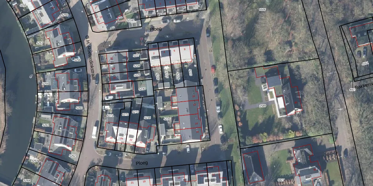 Het perceel waarop Ploeg 10 staat heeft een oppervlakte van 812 m². Dit is een groot perceel. De perceeloppervlakte wordt geregistreerd door het Kadaster. Gedetailleerde informatie over de maten van dit perceel kunt u vinden in het rapport Kadastrale kaart met maatvoering van Ploeg 10.