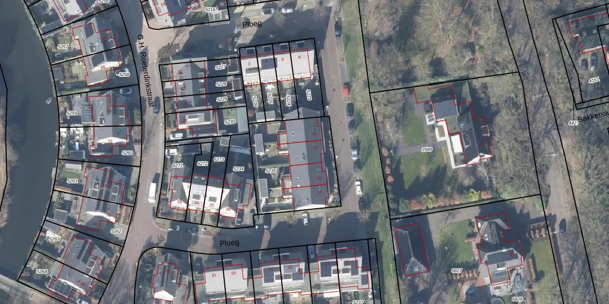 Het perceel waarop Ploeg 12 staat heeft een oppervlakte van 812 m². Dit is een groot perceel. De perceeloppervlakte wordt geregistreerd door het Kadaster. Gedetailleerde informatie over de maten van dit perceel kunt u vinden in het rapport Kadastrale kaart met maatvoering van Ploeg 12.