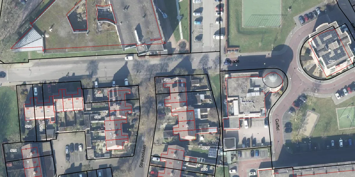 Strausslaan 1 is gelegen op kadastraal perceel VHZ02G5498. Deze kadastrale aanduiding is uniek en wordt gebruikt door het Kadaster om eigendomsrechten en andere zakelijke rechten vast te leggen. Het perceel maakt onderdeel uit van de kadastrale gemeente Voorthuizen.