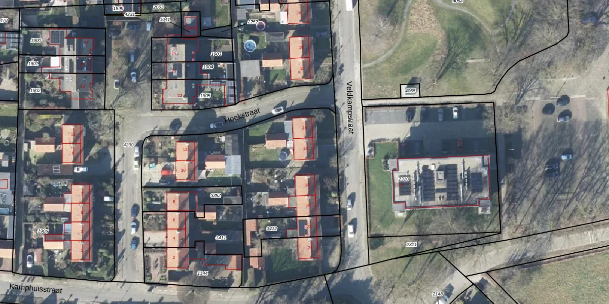 Veldkampstraat 16 is gelegen op kadastraal perceel VHZ02F3411. Deze kadastrale aanduiding is uniek en wordt gebruikt door het Kadaster om eigendomsrechten en andere zakelijke rechten vast te leggen. Het perceel maakt onderdeel uit van de kadastrale gemeente Voorthuizen.