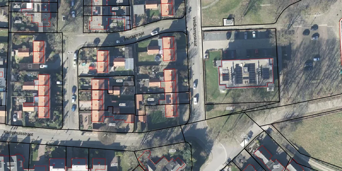 Veldkampstraat 20 is gelegen op kadastraal perceel VHZ02F3411. Deze kadastrale aanduiding is uniek en wordt gebruikt door het Kadaster om eigendomsrechten en andere zakelijke rechten vast te leggen. Het perceel maakt onderdeel uit van de kadastrale gemeente Voorthuizen.