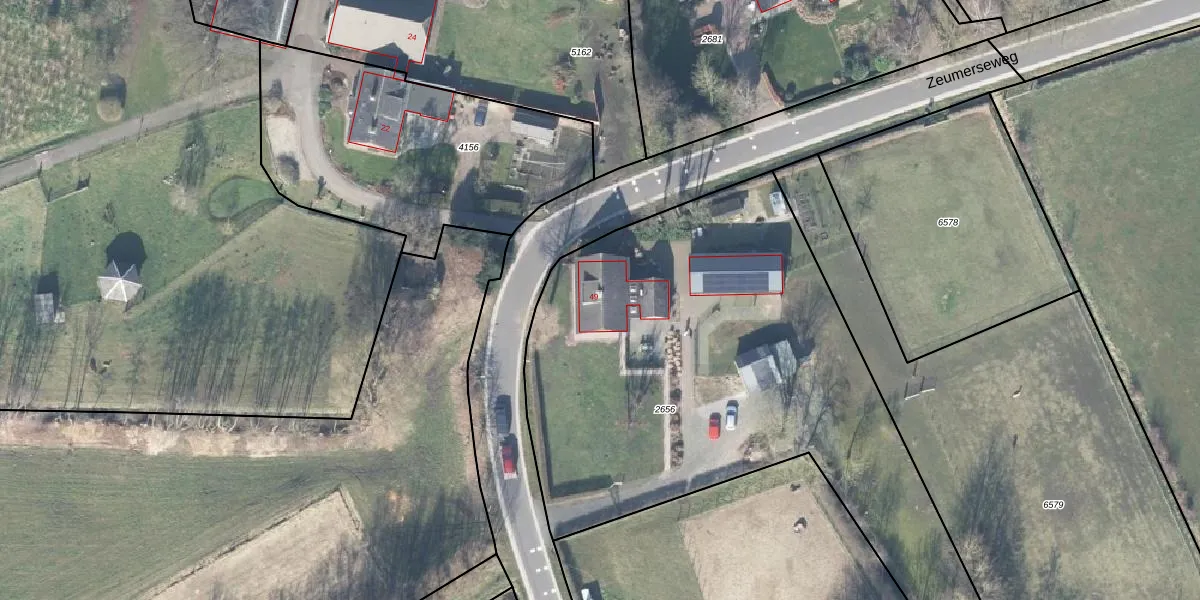 Het perceel waarop Zeumerseweg 49 staat heeft een oppervlakte van 2930 m². Dit is een zeer groot perceel. De perceeloppervlakte wordt geregistreerd door het Kadaster. Gedetailleerde informatie over de maten van dit perceel kunt u vinden in het rapport Kadastrale kaart met maatvoering van Zeumerseweg 49.