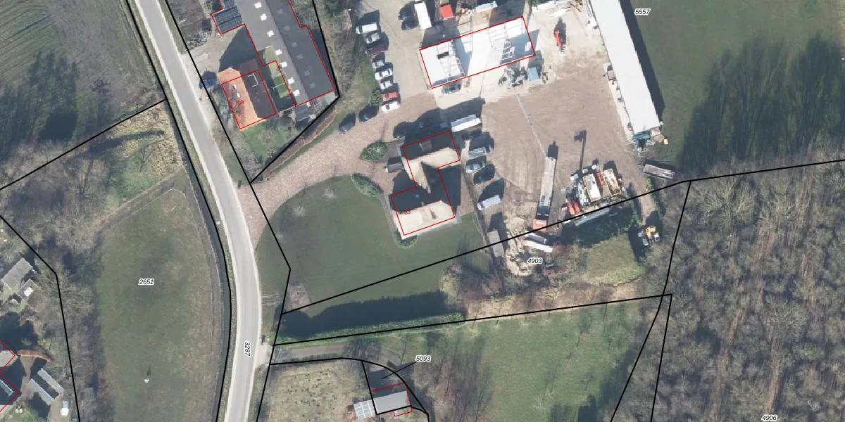 Het adres is gelegen op perceel 5557 in de sectie G en de kadastrale gemeente Voorthuizen. De kadastrale aanduiding is aldus VHZ02-G-5557. Het perceel is met 1,2 ha relatief groot. Het gemiddelde ligt in de kadastrale gemeente Voorthuizen op 3361,21 m². Het kleinste perceel in de kadastrale gemeente is 0 m² groot. De grootste perceeloppervlakte is 61,0 ha. Op het perceel bevinden zich geen andere adressen. De huidige grenzen van het perceel zijn digitaal in de Basisregistratie Kadaster (BRK) geregistreerd op 29-04-2016.
