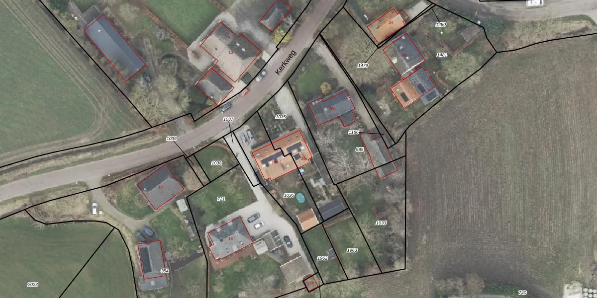 Het perceel waarop Kerkweg 20 staat heeft een oppervlakte van 516 m². Dit is een groot perceel. De perceeloppervlakte wordt geregistreerd door het Kadaster. Gedetailleerde informatie over de maten van dit perceel kunt u vinden in het rapport Kadastrale kaart met maatvoering van Kerkweg 20.