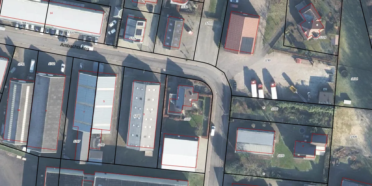 Het perceel waarop Ambachtsweg 1 staat heeft een oppervlakte van 1325 m². Dit is een zeer groot perceel. De perceeloppervlakte wordt geregistreerd door het Kadaster. Gedetailleerde informatie over de maten van dit perceel kunt u vinden in het rapport Kadastrale kaart met maatvoering van Ambachtsweg 1.