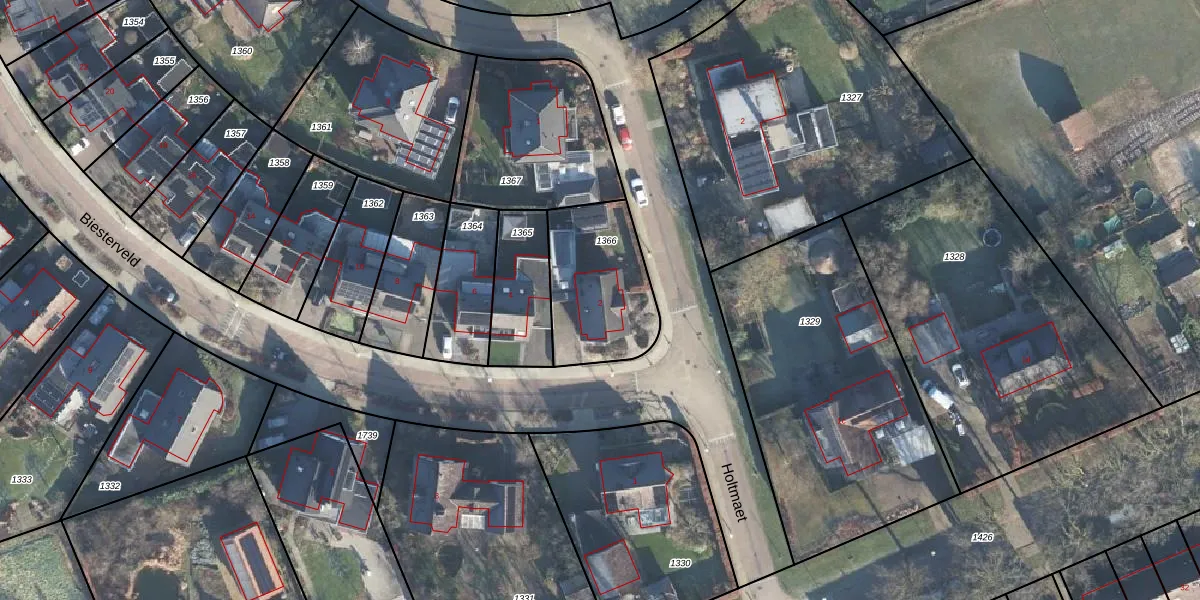 Gebruik de zoekbalk of klik op een perceel voor informatie over de adressen binnen dit perceel.