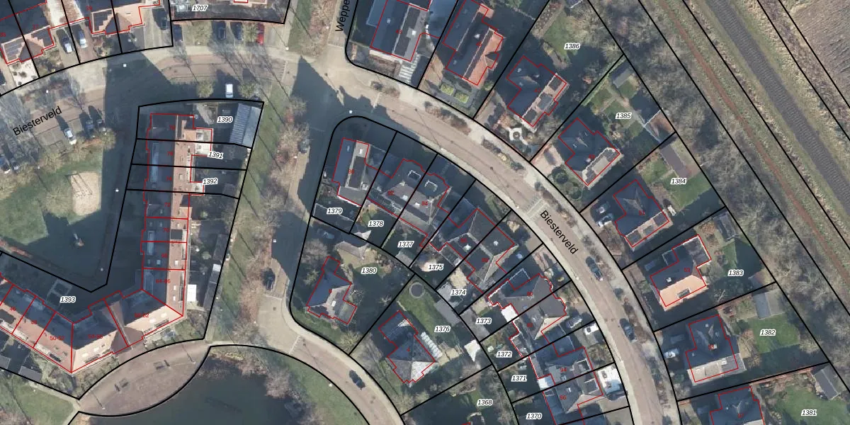 Gebruik de zoekbalk of klik op een perceel voor informatie over de adressen binnen dit perceel.