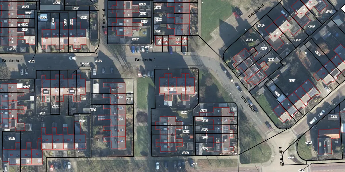Het perceel waarop Brinkerhof 15 staat heeft een oppervlakte van 822 m². Dit is een groot perceel. De perceeloppervlakte wordt geregistreerd door het Kadaster. Gedetailleerde informatie over de maten van dit perceel kunt u vinden in het rapport Kadastrale kaart met maatvoering van Brinkerhof 15.