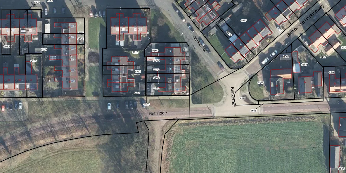 Het perceel waarop Brinkerhof 9 staat heeft een oppervlakte van 193 m². Dit is een middelgroot perceel. De perceeloppervlakte wordt geregistreerd door het Kadaster. Gedetailleerde informatie over de maten van dit perceel kunt u vinden in het rapport Kadastrale kaart met maatvoering van Brinkerhof 9.