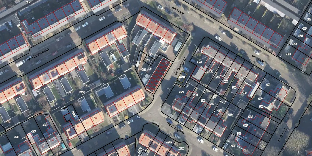 Het perceel waarop de Bongerd 12-G-05 staat heeft een oppervlakte van 360 m². Dit is een groot perceel. De perceeloppervlakte wordt geregistreerd door het Kadaster. Gedetailleerde informatie over de maten van dit perceel kunt u vinden in het rapport Kadastrale kaart met maatvoering van de Bongerd 12-G-05.