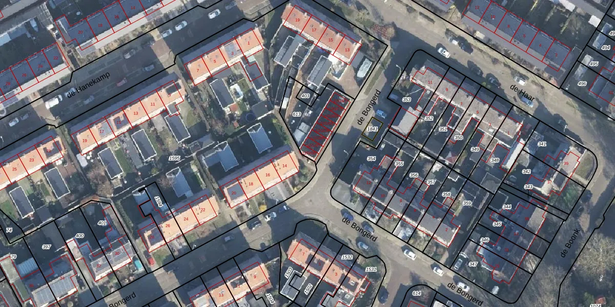 Het perceel waarop de Bongerd 12-G-08 staat heeft een oppervlakte van 360 m². Dit is een groot perceel. De perceeloppervlakte wordt geregistreerd door het Kadaster. Gedetailleerde informatie over de maten van dit perceel kunt u vinden in het rapport Kadastrale kaart met maatvoering van de Bongerd 12-G-08.