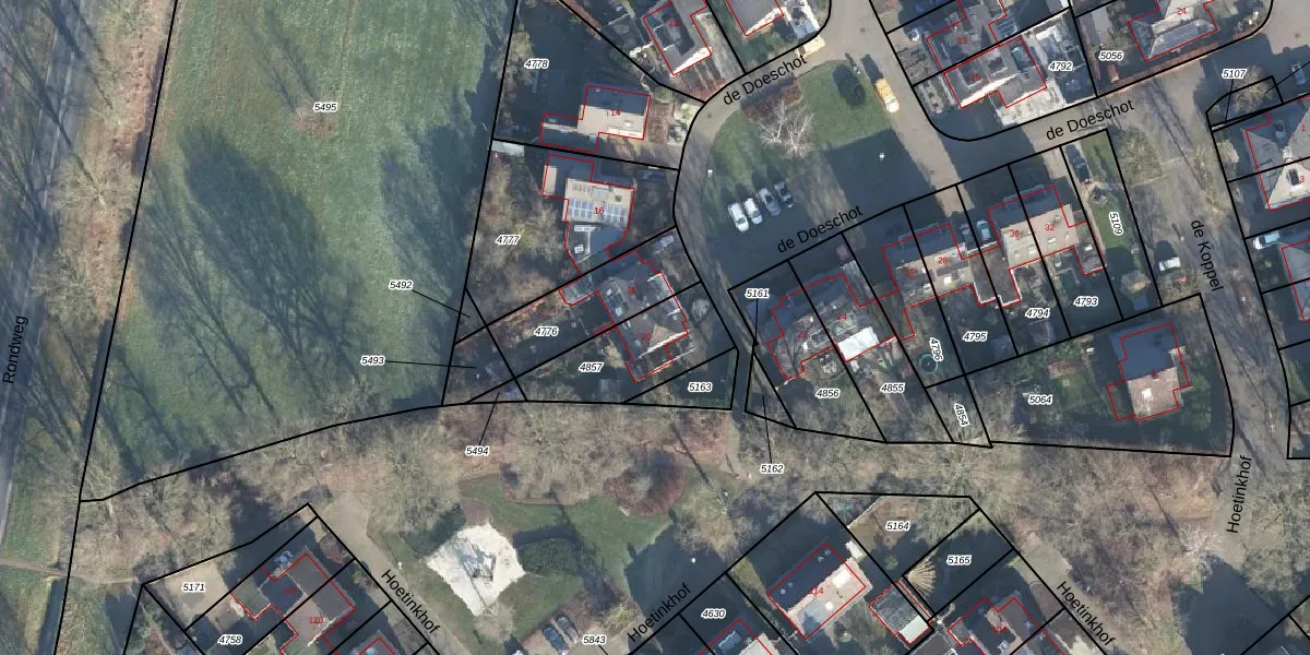 de Doeschot 20 is gelegen op kadastraal perceel VDN02K4857. Deze kadastrale aanduiding is uniek en wordt gebruikt door het Kadaster om eigendomsrechten en andere zakelijke rechten vast te leggen. Het perceel maakt onderdeel uit van de kadastrale gemeente Vorden.