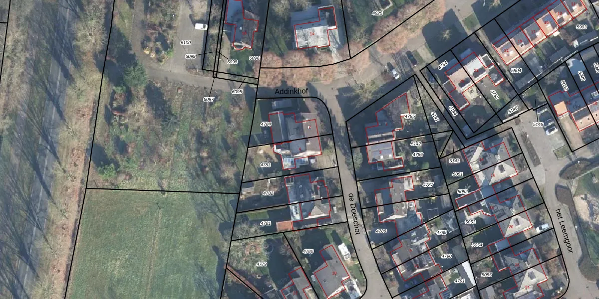 Gebruik de zoekbalk of klik op een perceel voor informatie over de adressen binnen dit perceel.
