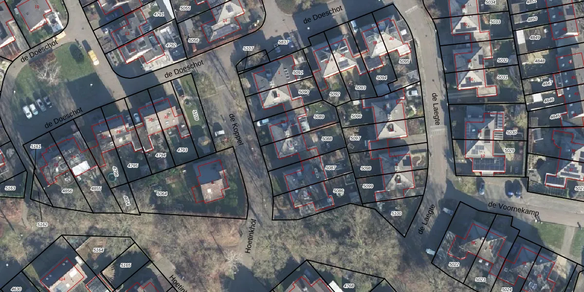 Gebruik de zoekbalk of klik op een perceel voor informatie over de adressen binnen dit perceel.