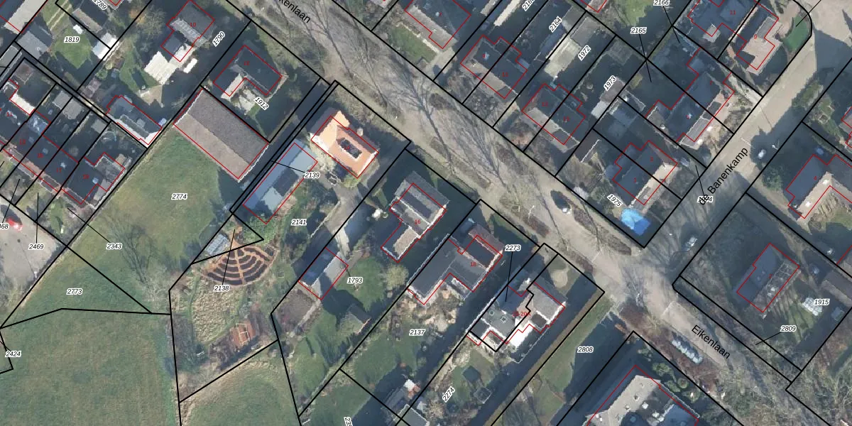 Het perceel waarop Eikenlaan 16 staat heeft een oppervlakte van 1175 m². Dit is een zeer groot perceel. De perceeloppervlakte wordt geregistreerd door het Kadaster. Gedetailleerde informatie over de maten van dit perceel kunt u vinden in het rapport Kadastrale kaart met maatvoering van Eikenlaan 16.