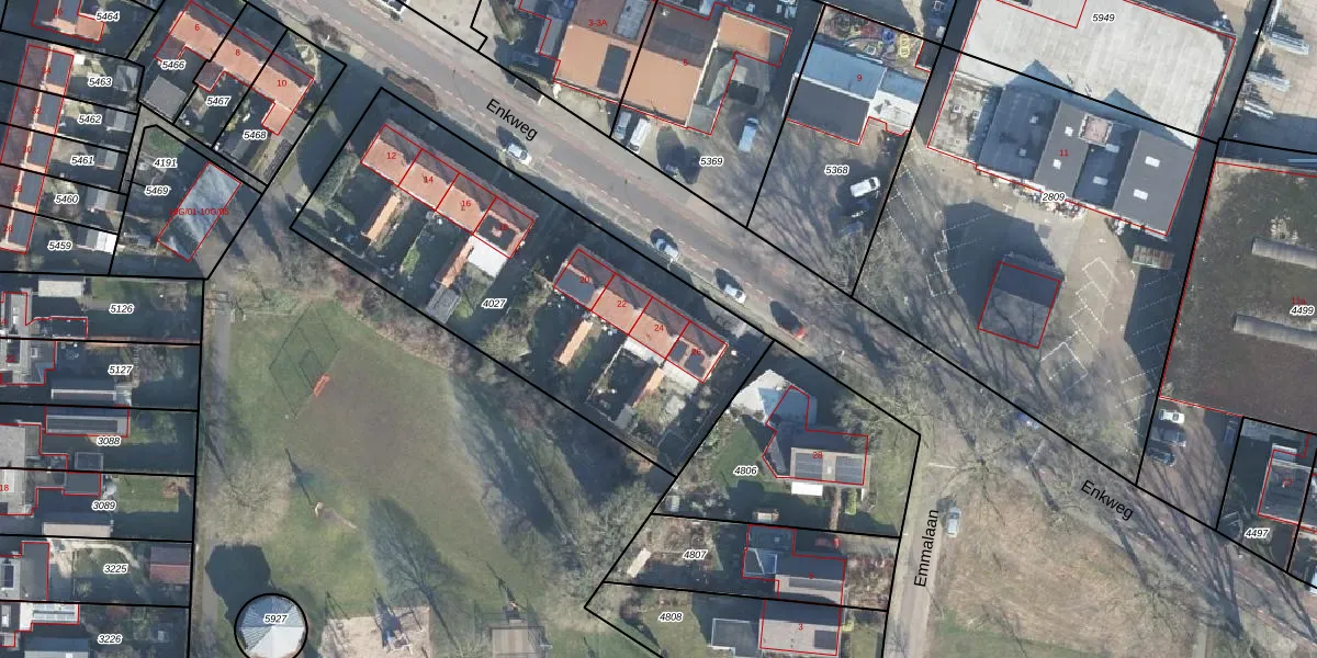 Enkweg 24 is gelegen op kadastraal perceel VDN02K4027. Deze kadastrale aanduiding is uniek en wordt gebruikt door het Kadaster om eigendomsrechten en andere zakelijke rechten vast te leggen. Het perceel maakt onderdeel uit van de kadastrale gemeente Vorden.