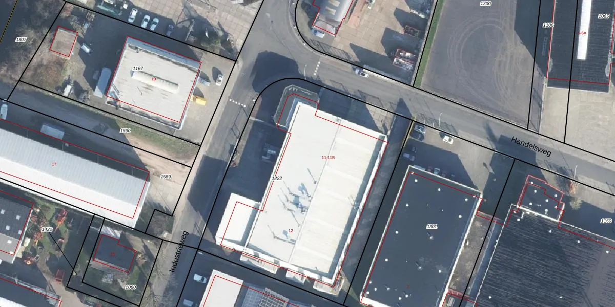 Het perceel waarop Handelsweg 11-A staat heeft een oppervlakte van 3225 m². Dit is een zeer groot perceel. De perceeloppervlakte wordt geregistreerd door het Kadaster. Gedetailleerde informatie over de maten van dit perceel kunt u vinden in het rapport Kadastrale kaart met maatvoering van Handelsweg 11-A.