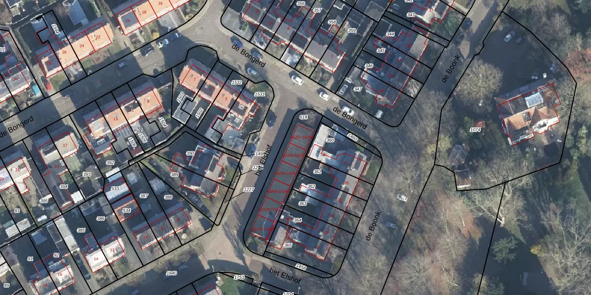 Het perceel waarop het Elshof 1-G-03 staat heeft een oppervlakte van 450 m². Dit is een groot perceel. De perceeloppervlakte wordt geregistreerd door het Kadaster. Gedetailleerde informatie over de maten van dit perceel kunt u vinden in het rapport Kadastrale kaart met maatvoering van het Elshof 1-G-03.