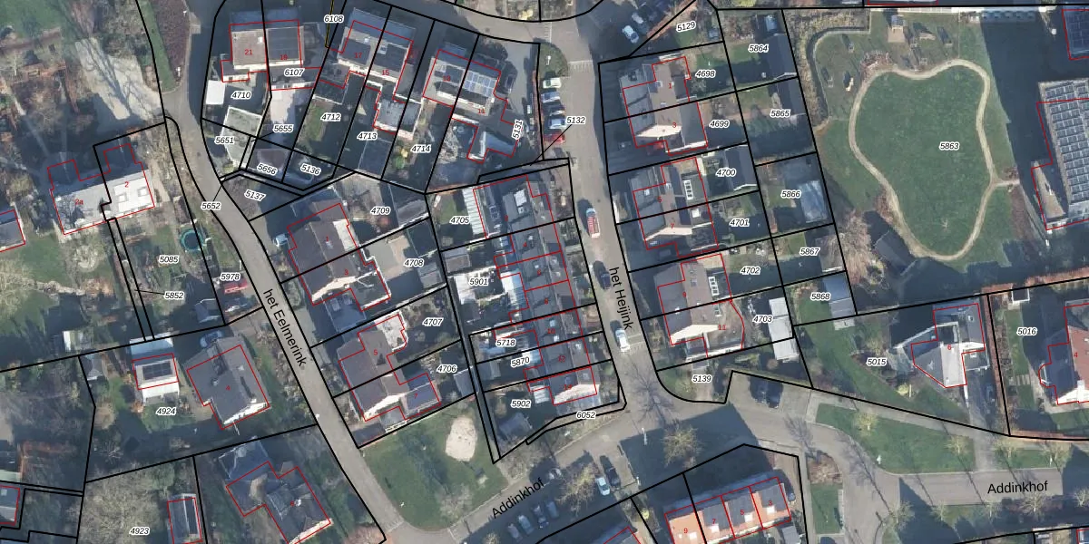 Het perceel waarop het Heijink 6 staat heeft een oppervlakte van 450 m². Dit is een groot perceel. De perceeloppervlakte wordt geregistreerd door het Kadaster. Gedetailleerde informatie over de maten van dit perceel kunt u vinden in het rapport Kadastrale kaart met maatvoering van het Heijink 6.