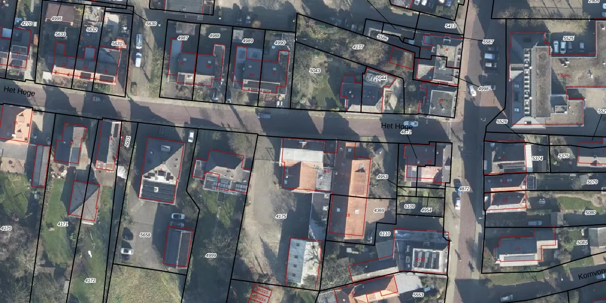 Het Hoge 5 is gelegen op kadastraal perceel VDN02K4175. Deze kadastrale aanduiding is uniek en wordt gebruikt door het Kadaster om eigendomsrechten en andere zakelijke rechten vast te leggen. Het perceel maakt onderdeel uit van de kadastrale gemeente Vorden.