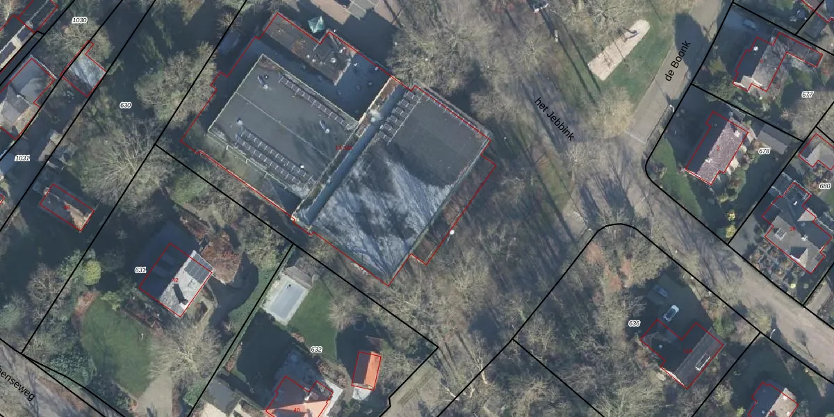 Het perceel waarop het Jebbink 13-a staat heeft een oppervlakte van 4,3 ha. Dit is een zeer groot perceel. De perceeloppervlakte wordt geregistreerd door het Kadaster. Gedetailleerde informatie over de maten van dit perceel kunt u vinden in het rapport Kadastrale kaart met maatvoering van het Jebbink 13-a.