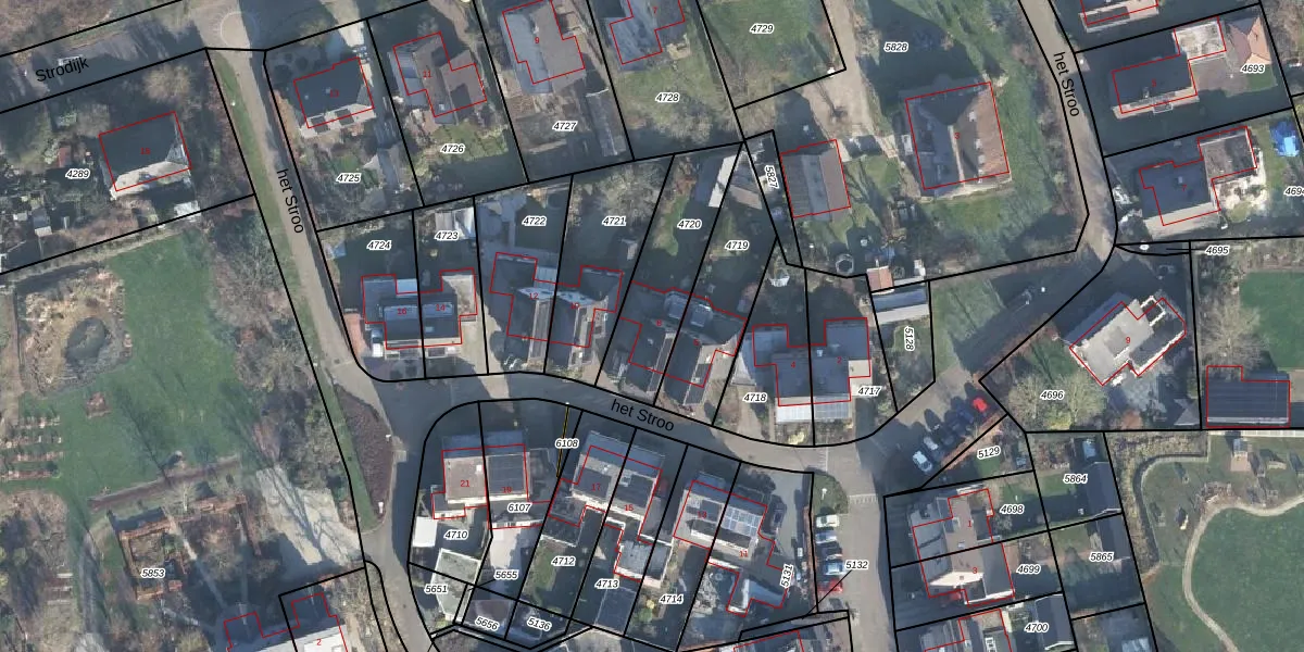 Het perceel waarop het Stroo 8 staat heeft een oppervlakte van 384 m². Dit is een groot perceel. De perceeloppervlakte wordt geregistreerd door het Kadaster. Gedetailleerde informatie over de maten van dit perceel kunt u vinden in het rapport Kadastrale kaart met maatvoering van het Stroo 8.
