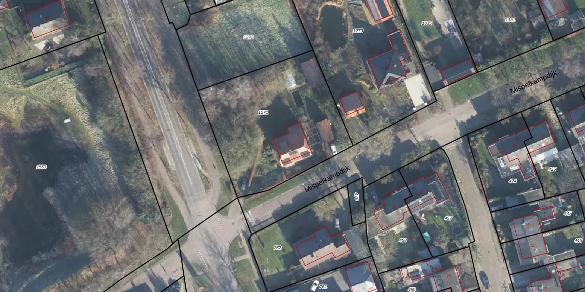 Het perceel waarop Mispelkampdijk 1 staat heeft een oppervlakte van 1635 m². Dit is een zeer groot perceel. De perceeloppervlakte wordt geregistreerd door het Kadaster. Gedetailleerde informatie over de maten van dit perceel kunt u vinden in het rapport Kadastrale kaart met maatvoering van Mispelkampdijk 1.