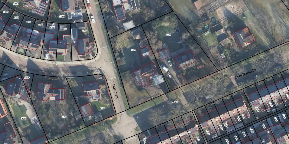 Het perceel waarop Mispelkampdijk 1-c staat heeft een oppervlakte van 1361 m². Dit is een zeer groot perceel. De perceeloppervlakte wordt geregistreerd door het Kadaster. Gedetailleerde informatie over de maten van dit perceel kunt u vinden in het rapport Kadastrale kaart met maatvoering van Mispelkampdijk 1-c.