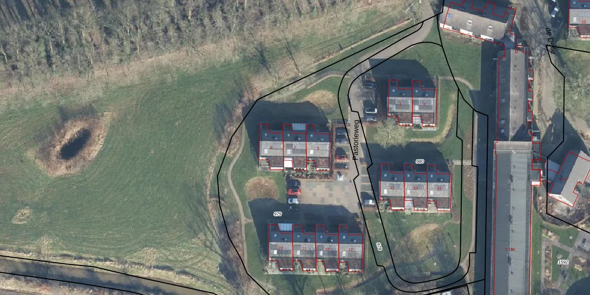 Pastorieweg 7 is gelegen op kadastraal perceel VDN02M979. Deze kadastrale aanduiding is uniek en wordt gebruikt door het Kadaster om eigendomsrechten en andere zakelijke rechten vast te leggen. Het perceel maakt onderdeel uit van de kadastrale gemeente Vorden.