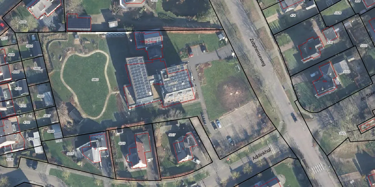 Het adres is gelegen op perceel 5863 in de sectie K en de kadastrale gemeente Vorden. De kadastrale aanduiding is aldus VDN02-K-5863. Het perceel is kleiner dan gemiddeld in Vorden. Het perceel is 5890 m² groot, terwijl het gemiddelde ligt op 8274,07 m². Het grootste perceel in de kadastrale gemeente is 70,5 ha. Het kleinste perceel heeft een oppervlakte van 0 m². Er zijn 31 adressen aanwezig op het perceel. In de Basisregistratie Kadaster (BRK) werden de grenzen van het perceel geregistreerd op 29-08-2014.