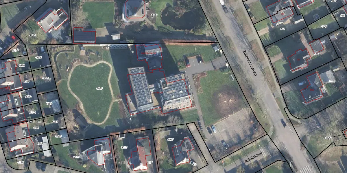 Het adres is gelegen op perceel 5863 in de sectie K en de kadastrale gemeente Vorden. De kadastrale aanduiding is aldus VDN02-K-5863. Het perceel is kleiner dan gemiddeld in Vorden. Het perceel is 5890 m² groot, terwijl het gemiddelde ligt op 8275,08 m². Het grootste perceel in de kadastrale gemeente is 70,5 ha. Het kleinste perceel heeft een oppervlakte van 0 m². Er zijn 31 adressen aanwezig op het perceel. De huidige grenzen van het perceel zijn digitaal in de Basisregistratie Kadaster (BRK) geregistreerd op 29-08-2014.