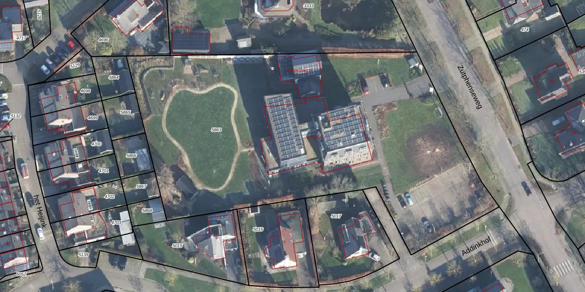 Het adres is gelegen op perceel 5863 in de sectie K en de kadastrale gemeente Vorden. De kadastrale aanduiding is aldus VDN02-K-5863. Het perceel is kleiner dan gemiddeld in Vorden. Het perceel is 5890 m² groot, terwijl het gemiddelde ligt op 8275,08 m². Het grootste perceel in de kadastrale gemeente is 70,5 ha. Het kleinste perceel heeft een oppervlakte van 0 m². Op het perceel zijn 31 adressen aanwezig. De laatste wijziging in het de Basisregistratie Kadaster (BRK) was op 29-08-2014.