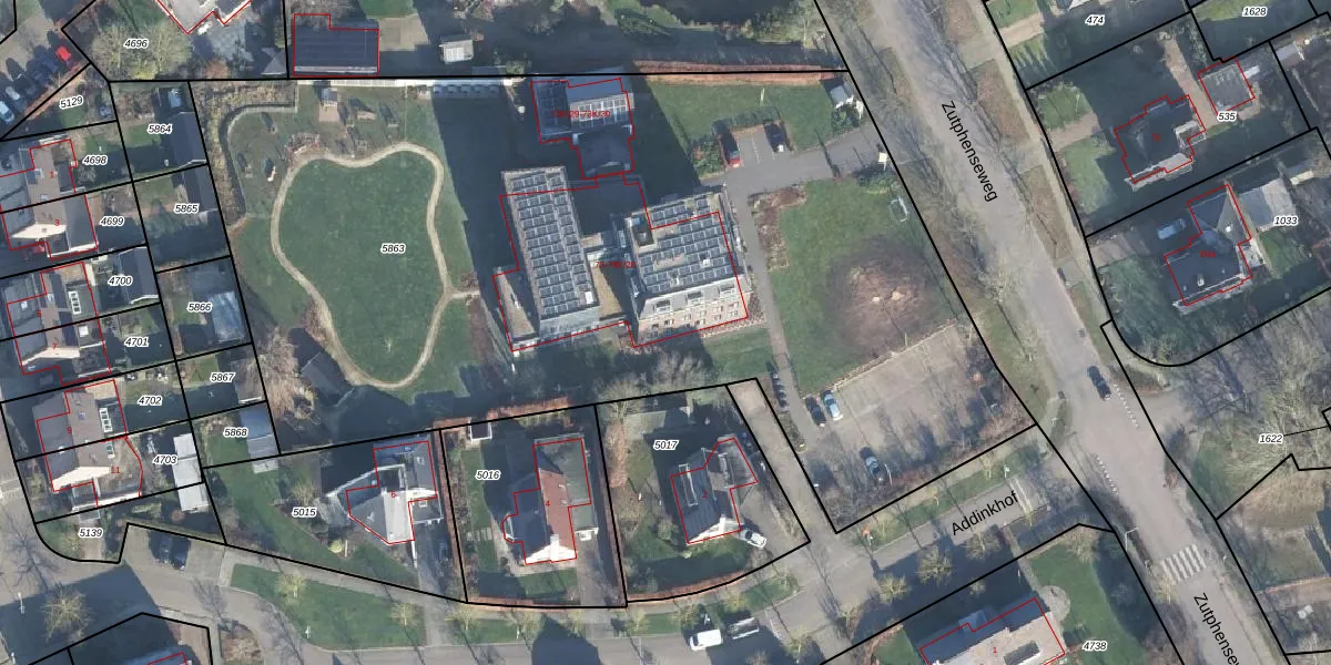 Het adres is gelegen op perceel 5863 in de sectie K en de kadastrale gemeente Vorden. De kadastrale aanduiding is aldus VDN02-K-5863. Het perceel is kleiner dan gemiddeld in Vorden. Het perceel is 5890 m² groot, terwijl het gemiddelde ligt op 8274,07 m². Het grootste perceel in de kadastrale gemeente is 70,5 ha. Het kleinste perceel heeft een oppervlakte van 0 m². Op het perceel liggen in totaal 31 adressen. In de Basisregistratie Kadaster (BRK) werden de grenzen van het perceel geregistreerd op 29-08-2014.