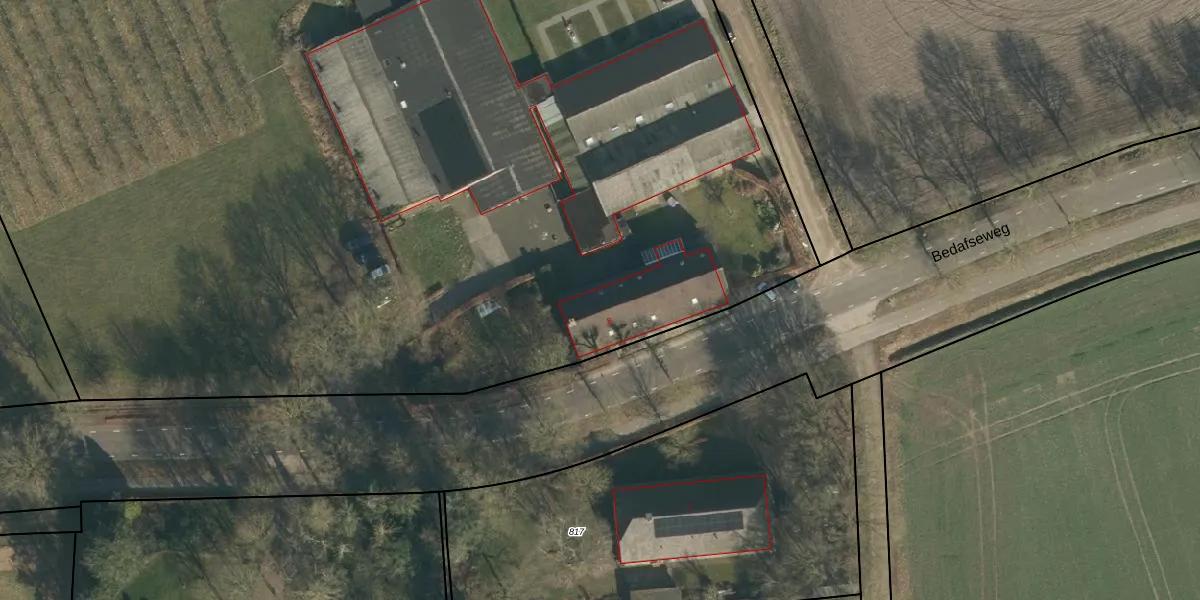 Het perceel waarop Bedafseweg 8-a staat heeft een oppervlakte van 2,0 ha. Dit is een zeer groot perceel. De perceeloppervlakte wordt geregistreerd door het Kadaster. Gedetailleerde informatie over de maten van dit perceel kunt u vinden in het rapport Kadastrale kaart met maatvoering van Bedafseweg 8-a.