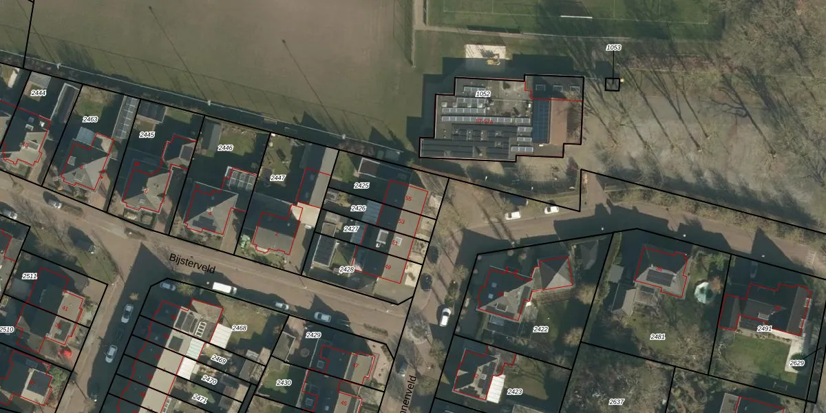 Het adres ligt op het perceel NTR00-E-2425, dat zich in de kadastrale gemeente Nistelrode bevindt. Het perceel is kleiner dan gemiddeld in Nistelrode. Het perceel is 274 m² groot, terwijl het gemiddelde ligt op 5101,48 m². Het kleinste perceel in de kadastrale gemeente is 0 m² groot. De grootste perceeloppervlakte is 85,7 ha. Er zijn geen andere adressen aanwezig op het perceel. De huidige grenzen van het perceel zijn digitaal in de Basisregistratie Kadaster (BRK) geregistreerd op 30-10-2012.