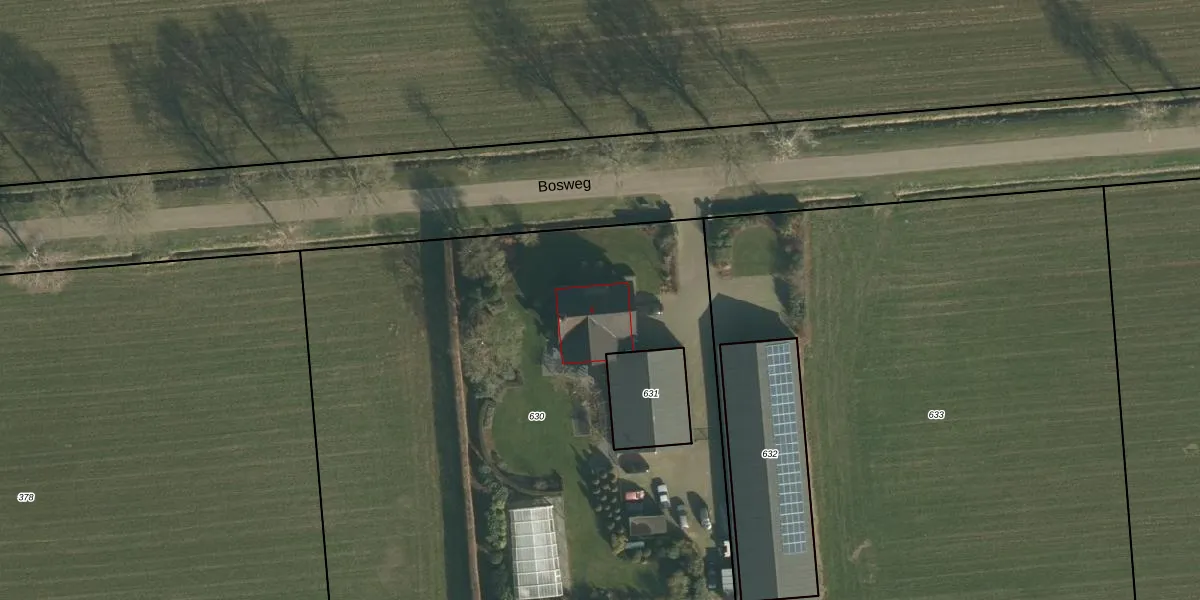 Bosweg 6 is gelegen op kadastraal perceel NTR00K630. Deze kadastrale aanduiding is uniek en wordt gebruikt door het Kadaster om eigendomsrechten en andere zakelijke rechten vast te leggen. Het perceel maakt onderdeel uit van de kadastrale gemeente Nistelrode.