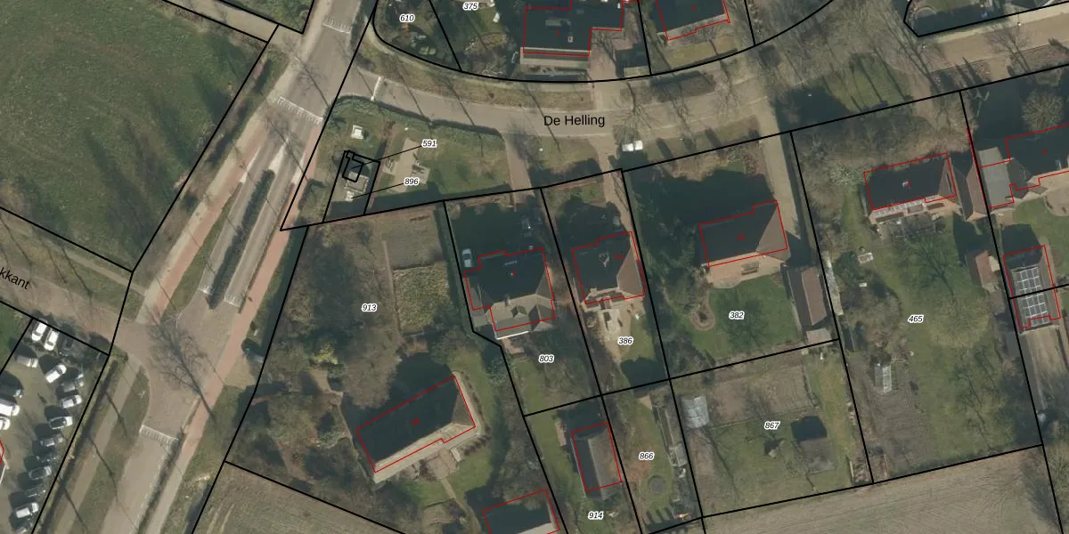 De Helling 2 is gelegen op kadastraal perceel NTR00G803. Deze kadastrale aanduiding is uniek en wordt gebruikt door het Kadaster om eigendomsrechten en andere zakelijke rechten vast te leggen. Het perceel maakt onderdeel uit van de kadastrale gemeente Nistelrode.