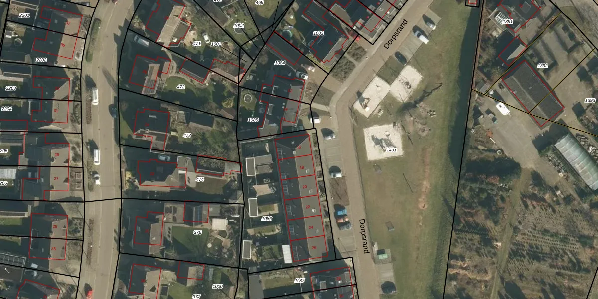 Het perceel waarop Dorpsrand 16 staat heeft een oppervlakte van 1275 m². Dit is een zeer groot perceel. De perceeloppervlakte wordt geregistreerd door het Kadaster. Gedetailleerde informatie over de maten van dit perceel kunt u vinden in het rapport Kadastrale kaart met maatvoering van Dorpsrand 16.